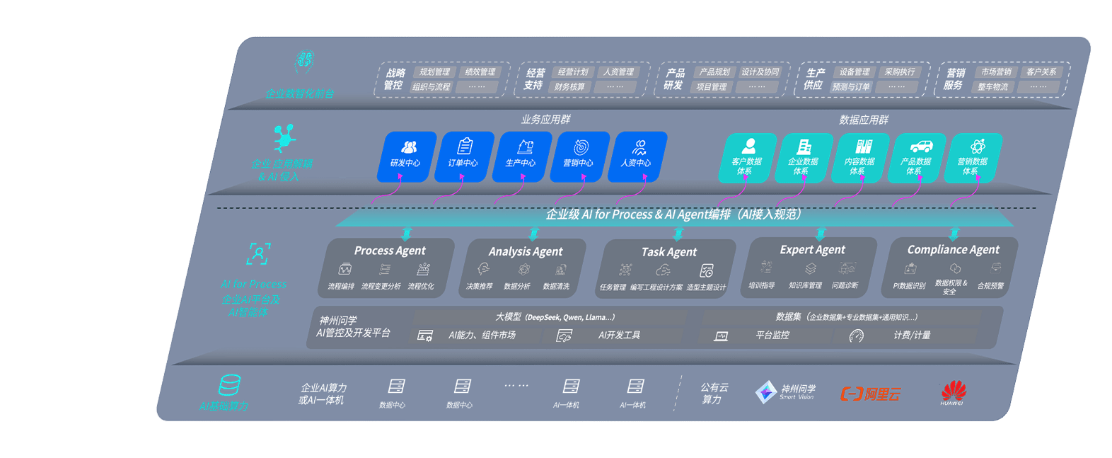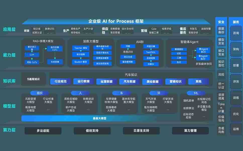端到端的一站式AI工作空间深度融合了从企业战略规划到日常经营的全流程业务板块,,定向解决车企内部领域多、、、部门多、、、、链条长、、、场景碎片化等难题,,,,支持车企快速构建以AI为核心的生产力写作体系,,实现任务执行与AI能力的无缝集成与交互